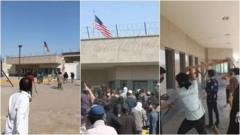 مظاہرین کا قونصل خانے کی عمارت سے امریکی جھنڈا اُتارنے کا مطالبہ