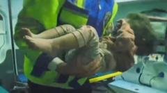 18 महीने की हेल्मा को मलबे से बाहर निकाला जाता है.