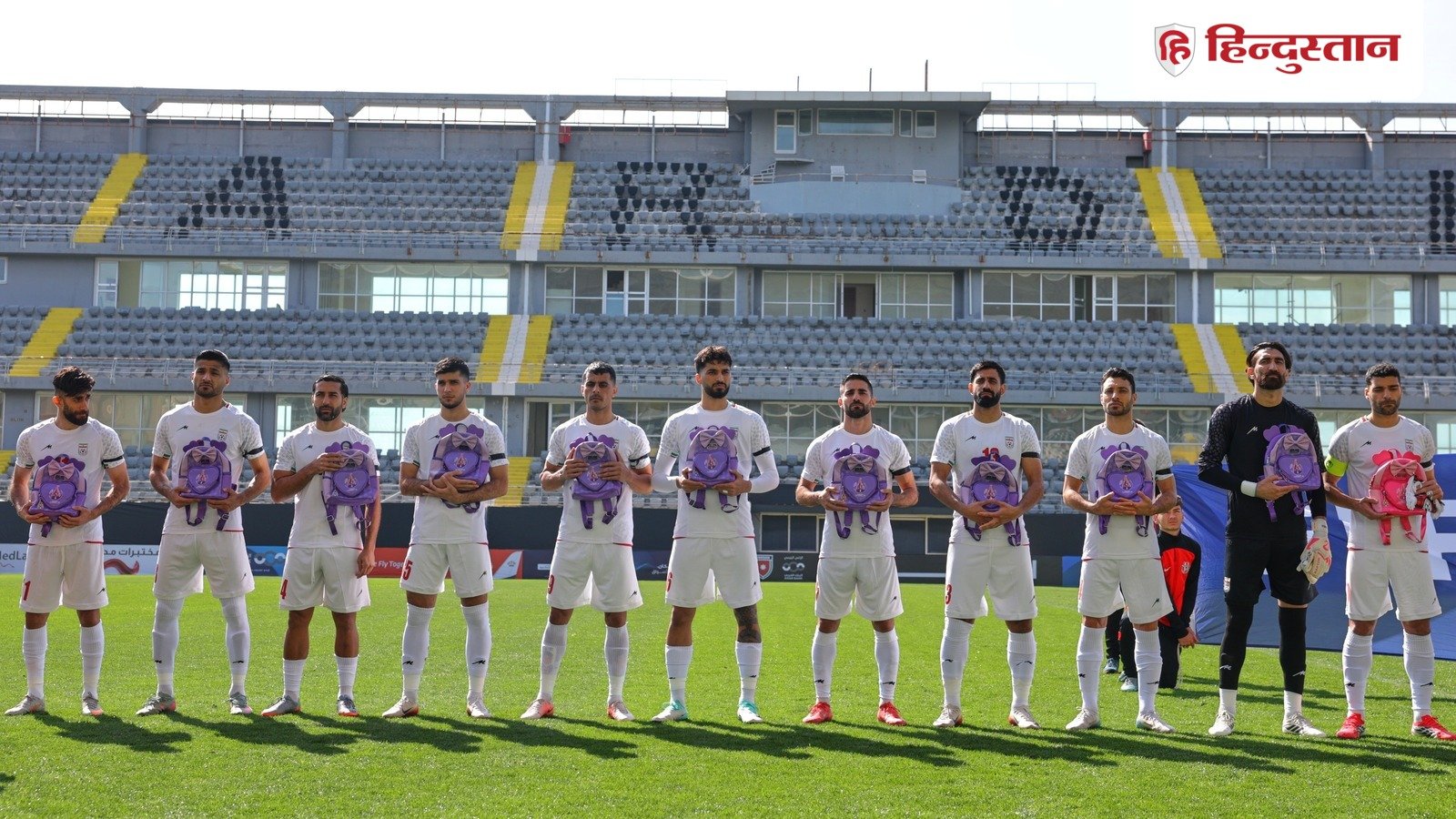 सोशल मीडिया पर सामने आई तस्वीरों में ईरानी खिलाड़ी राष्ट्रगान के दौरान एक साथ खड़े हैं और उनके हाथों में बच्चों के चमकीले रंग के बैग थे। ईरानी सरकार से जुड़े मीडिया संगठन प्रेस टीवी की रिपोर्ट के मुताबिक ईरान की राष्ट्रीय फुटबॉल टीम द्वारा राष्ट्रगान के दौरान स्कूल बैग थामना उन बच्चों को याद करना था जो मीनाब में एक स्कूल पर हुए अमेरिकी-इजरायली बमबारी में मारे गए थे।