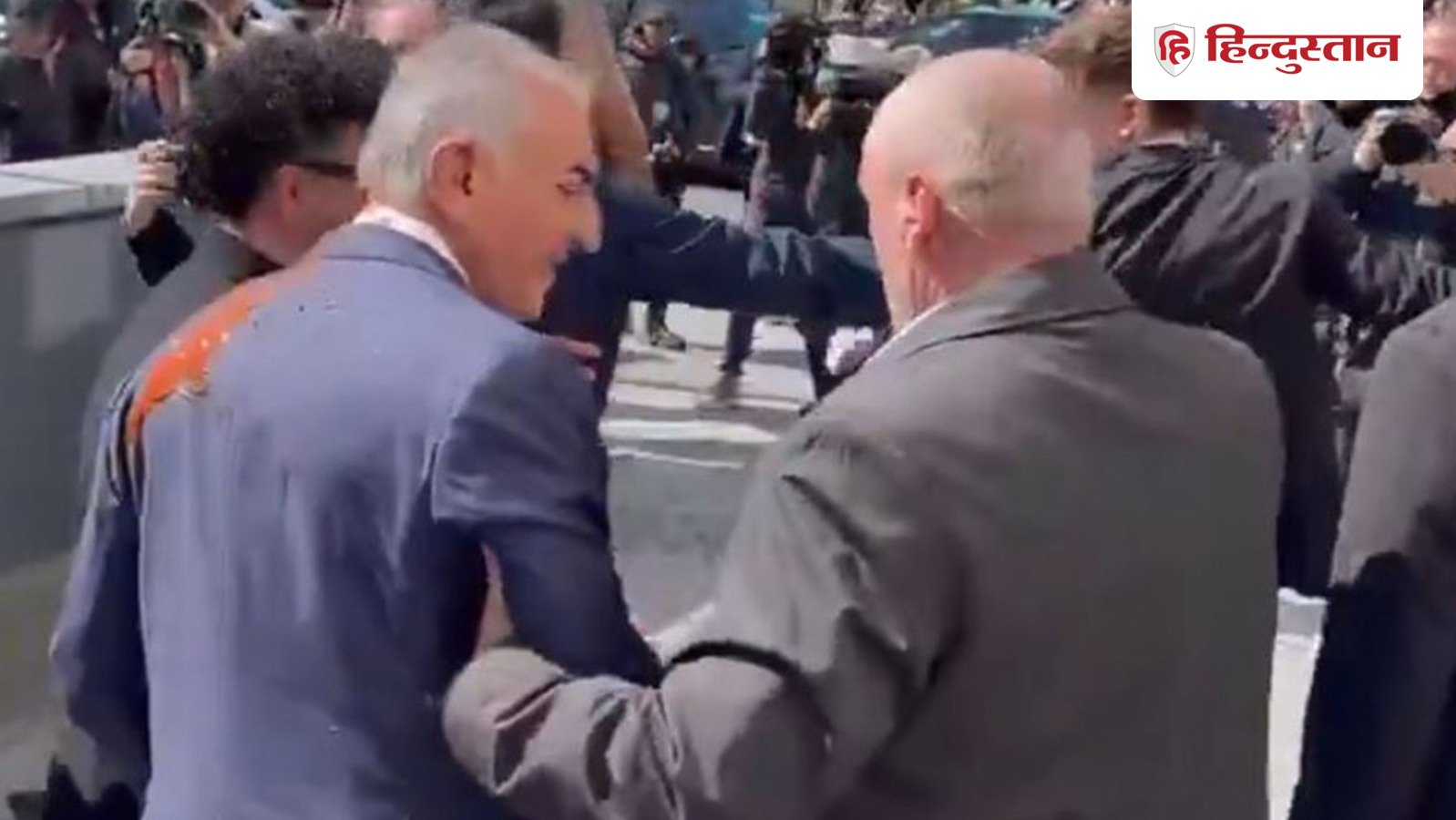 ईरान के निर्वासित युवराज रेजा पहलवी पर गुरुवार को जर्मनी की राजधानी बर्लिन में हमला किया गया। एक व्यक्ति ने इमारत से बाहर निकलते समय उनके ऊपर लाल रंग का तरल पदार्थ फेंक दिया। ईरानी सरकारी मीडिया ने इस घटना का वीडियो जारी किया है, जिसमें हमलावर द्वारा टमाटर केचप फेंकते हुए दिखाया गया है। आईआरएनए द्वारा शेयर किए गए 47 सेकंड के वीडियो में देखा जा सकता है कि पहलवी बर्लिन की एक इमारत से बाहर आ रहे थे, तभी एक व्यक्ति ने उन पर हमला कर उनकी पीठ पर लाल तरल पदार्थ फेंक दिया। सुरक्षा कर्मियों ने तुरंत हमलावर को दबोच लिया और रेजा पहलवी को सुरक्षित तरीके से वहां खड़ी कार तक पहुंचाया। कार के आगे ईरानी झंडे लहराते दिख रहे थे और समर्थक मौजूद थे।