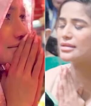 पूनम दरअसल, 23 फरवरी को उत्तर प्रदेश, वृंदावन में गई थीं। वहां वह सत्संग अटेन्ड करती हैं। वहीं वह मंदिर में बैठती हैं और अपने आंसू साफ करती हैं।