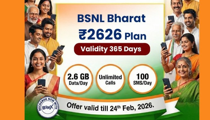 BSNL ने गणतंत्र दिवस के अवसर पर अपने ग्राहकों के लिए 365 दिन चलने वाला स्पेशल प्लान लॉन्च किया था। इस प्लान का नाम BSNL Bharat Connect 26 है और यह स्पेशल प्लान अब बस कुछ ही दिनों में बंद होने वाला है। इस प्लान की कीमत 2626 रुपये है। इस प्लान में ग्राहकों को अनलिमिटेड कॉल्स के साथ कुल 949GB डेटा मिलता है। कब बंद हो रहा है ह स्पेशल प्लान और इसमें ग्राहकों को क्या-क्या बेनिफिट्स मिलते हैं। चलिए डिटेल में बताते हैं…