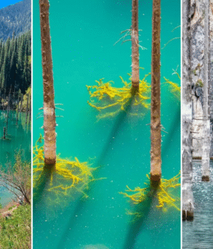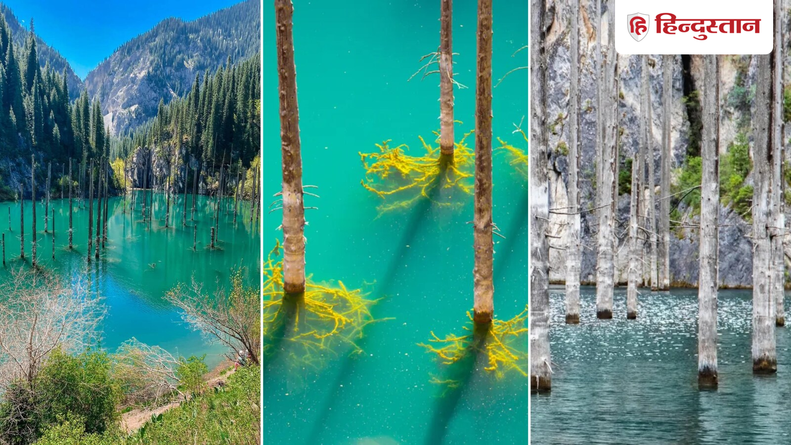 पेड़ तो आपने कई देखे होंगे, लेकिन आज हम आपको ऐसे पेड़ के बारे में बताएंगे, जिसे देख आपको पहली नजर में विश्वास ही नहीं होगा कि ऐसा भी हो सकता है। बर्फीले पानी से झांकते इन पेड़ों को देखने के लिए दुनिया भर से लोग आते हैं और कैमरे में कैद कर अपने साथ ले जाते हैं। दरअसल, कजाकिस्तान के तियान शान पर्वतों में बसी कैंडी झील इन दिनों अपनी अनोखी संरचना और रहस्यमयी नजारे की वजह से दुनिया भर के पर्यटकों को अपनी ओर खींच रही है। झील के नीले-हरे पानी से बाहर निकले पेड़ों के तने किसी भूतिया जंगल का भ्रम पैदा करते हैं। देखने से ऐसा लगता है जैसे समय यहां एक सदी पहले ही थम गया हो।
