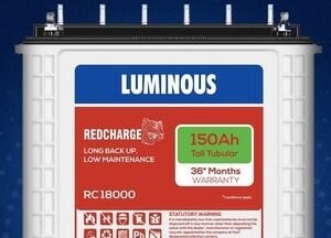 Luminous RC 18000 एक टॉल ट्यूबलर बैटरी है, जो अपनी मजबूती और लंबी उम्र के लिए जानी जाती है। यह 150Ah की क्षमता के साथ आती है, जो मध्यम से बड़े घरों और दुकानों के लिए पर्याप्त पावर बैकअप सुनिश्चित करती है। इसे खास तौर पर उन इलाकों के लिए बनाया गया है जहाँ बिजली की कटौती बार-बार और लंबे समय के लिए होती है।