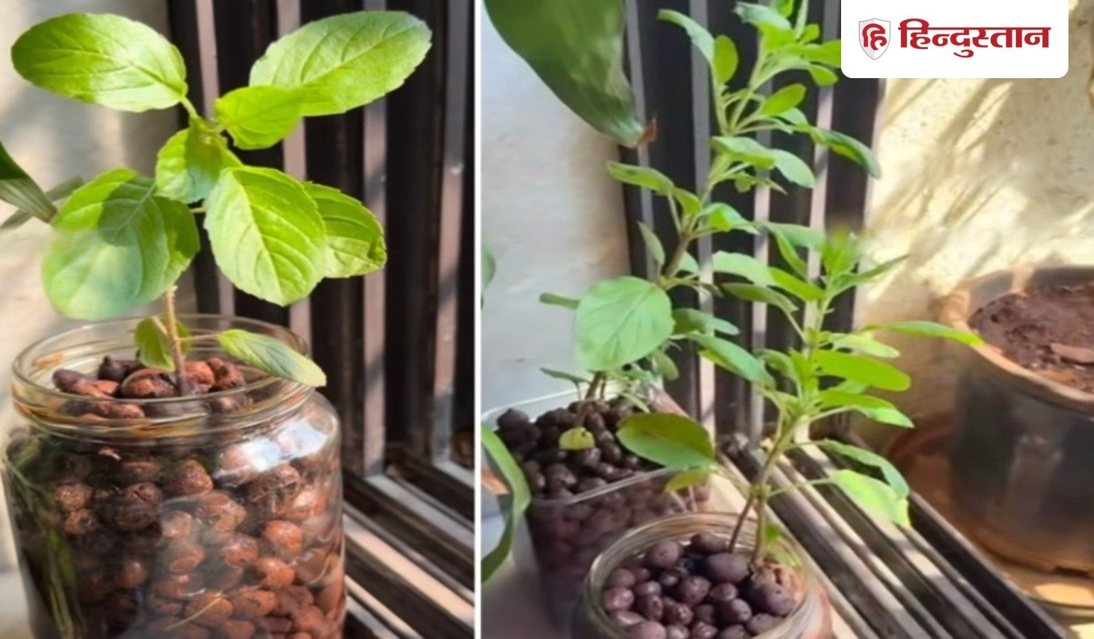 हिंदू धर्म में तुलसी के पौधे का धार्मिक महत्व बहुत ज्यादा है। हर घर में आपको तुलसी का पौधा जरूर मिल जाएगा। तुलसी का पौधा आमतौर पर मिट्टी और गमले में उगाया जाता है लेकिन क्या आप जानते हैं कि इसे पानी में भी उगा सकते हैं? जी हां, जिस तरह मनी प्लांट का पौधा पानी में उगाया जाता है, ठीक उसी तरह तुलसी का पौधा भी पानी में ग्रो किया जा सकता है। इसे हाइड्रोपोनिक्स तकनीक की मदद से कांच के जार में आप आसानी से उगा सकते हैं। ये तरीका खासतौर से उन लोगों के लिए है जो छोटे अपार्टमेंट में रहते हैं और पौधा उगाने के लिए जगह नहीं है। साथ ही अगर आपका पौधा सही से ग्रो नहीं हो पाता है, तो भी इस सिंपल तरीके से आप हरी-भरी तुलसी लगा सकते हैं।