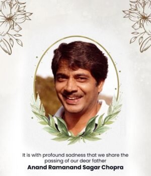 उन्होंने सोशल मीडिया पर लिखा, ‘बहुत ही दुख के साथ कहा जा रहा है कि हमारे पिता श्री रामानंद सागर चोपड़ा का निधन हो गया है।’
