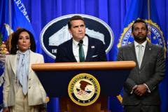 ২৭ এপ্রিল, ২০২৬ তারিখে ওয়াশিংটন ডিসি-তে বিচার বিভাগে আয়োজিত এক সংবাদ সম্মেলনে ভারপ্রাপ্ত অ্যাটর্নি জেনারেল টড ব্লাঞ্চ বক্তব্য রাখছেন। পাশে আরো দুই জন