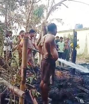 ଭଦ୍ରକ, ୧୭ା୪ (ଓଡ଼ିଆ ପୁଅ / ସ୍ନିଗ୍ଧା ରାୟ) – ଆରଡି ନିକଟସ୍ଥ ଭୂଇଁପୁର ଗାଁର ଶୁକ୍ରବାର ଭୋର ସମୟରେ ଅଶୋକ ବିଶ୍ୱାଳଙ୍କ ଗୁହାଳ ଘରେ କୈଣସି କାରଣରୁ ଅଗ୍ନିକାଣ୍ଡ ଘଟି ୨ଟି ଗୋରୁଙ୍କର ଜିବନ୍ତ ଦଗ୍ଧ ହୋଇଛି। ଗୁହାଳ ଘରେ ନିଆଁ ଦେଖି ଗାଁ ଲୋକ ନିଆଁକୂ ଆୟତ କରିବା ପାଇଁ ଚେଷ୍ଟା କରିଥିଲେ ମଧ୍ୟ ନିଆଁର ପ୍ରକୋପ ଏପରି ଥିଲା ଆୟତ କରିବା ସମ୍ଭବ ହୋଇନଥିଲା। ଖବର ପାଇ ଅଗ୍ନିଶମ ଗାଡି ପହଂଚିଥିଲେ ମଧ୍ୟ ନିଆଁ ଆରେ ସବୁକିଛି ଜଳି ପୋଡି ପାଉଁଶ ହୋଇଯିବା ସହ ଗୁହାଳେ ଥିବା ୨ଗୋରୁଙ୍କର ଜିବନ୍ତ ଦଗ୍ଧ ହୋଇଥିଲା।