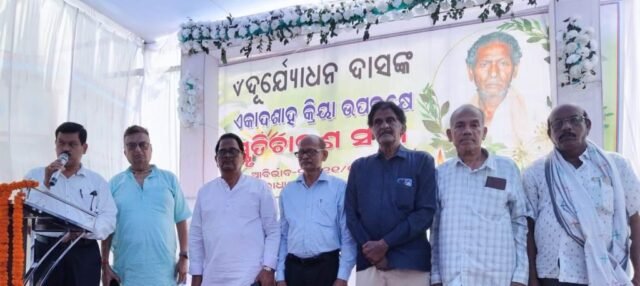ଭଦ୍ରକ, ୧୧ା୪ (ଓଡ଼ିଆ ପୁଅ / ସ୍ନିଗ୍ଧା ରାୟ) – ଭଦ୍ରକ ଜିଲା ଚାନ୍ଦବାଲି ବିଜ୍ଞାପିତ ଅଂଚଳ ପରିଷଦ ଅନ୍ତର୍ଗତ ପାଂଚପଡା ଗ୍ରାମ ନିବାସୀ ବିଶିଷ୍ଟ ମୂର୍ତୀ କାରିଗର ତଥା ଶିଳ୍ପୀ ସ୍ୱର୍ଗତ ଦୂର୍ଯୋଧନ ଦାସଙ୍କ ଏକାଦଶାହ ତିଥିରେ ଏକ ସ୍ମୃତି ଚାରଣ ସଭା ତାଙ୍କ ପାଂଚପଡା ବାସ ଭବନ ପରିସରରେ ଅନୁଷ୍ଠିତ ହୋଇଛି। ଯୁବ ସାହିତ୍ୟିକ ଅମୂଲ୍ୟ କୁମାର ରାଉତଙ୍କ ଅଧ୍ୟକ୍ଷତାରେ ଅନୁଷ୍ଠିତ ଏହି ସ୍ମୃତି ଚାରଣ ସଭାରେ ପ୍ରାକ୍ତନ ଭଦ୍ରକ ଜିଲ୍ଲା ପରିଷଦ ଅଧ୍ୟକ୍ଷ ଦ୍ୱିଜବର ରାଉତ, ବିଶିଷ୍ଟ ଶିଳ୍ପପତି ରାମ ପ୍ରସାଦ ମୋର, ସମାଜସେବୀ ଶରତ ଚନ୍ଦ୍ର ସାହୁ,ସୁଧୀର କୁମାର ମହାନ୍ତି, ତାରାପଦ ମହାନ୍ତି, ସାହିତ୍ୟିକ ପ୍ରଫୁଲ୍ଲ କୁମାର ଦାସ, ଦ୍ୱାରିକାନାଥ ଦାଶ ଚକ୍ରଧର ସାହୁ, କବୟିତ୍ରୀ ଲୀନା ମହାନ୍ତି,ମମତା ଦାସ ପ୍ରମୁଖ ଯୋଗ ଦେଇ ସ୍ୱର୍ଗତ ଦୂର୍ଯୋଧନ ଦାସ ଜଣେ ବିଶିଷ୍ଟ ସ୍ଥପତି,ମାଟି ମୂର୍ତୀ କାରିଗର, ଅନେକ ମନ୍ଦିର ନିର୍ମାଣ ର ସ୍ରଷ୍ଟା ତଥା ଶିଳ୍ପୀ ମାନଙ୍କର ମଉଡମଣୀ ଥିଲେ ଏବଂ ତାଙ୍କ ବିୟୋଗରେ ଚାନ୍ଦବାଲି ଜଣେ ବିଶିଷ୍ଟ ଶିଳ୍ପୀଙ୍କୁ ହରାଇଲା ବୋଲିମତ ବ୍ୟକ୍ତ କରିଥିଲେ।ଅନ୍ୟମାନଙ୍କ ମଧ୍ୟରେ ଶିକ୍ଷକ ଶୁଶାନ୍ତ କୁମାର ମଲ୍ଲିକ,ପ୍ରଦୀପ କୁମାର ସାହୁ,କାଳୀପଦ ଦାସ, ପ୍ରକାଶ ନାୟକ, ସମାଜସେବୀ ପ୍ରଫୁଲ୍ଲ ସାହୁ,ଅମିୟ କୁମାର ସାହୁ,ଅଶୋକ ପଲାଇ ପ୍ରମୁଖ ଯୋଗ ଦେଇ ସ୍ୱର୍ଗତ ଆତ୍ମାଙ୍କ ପ୍ରତି ଗଭୀର ଶ୍ରଦ୍ଧାଞ୍ଜଳି ଅର୍ପଣ କରିଥିଲେ। ଶେଷରେ ତାଙ୍କ ସୁପୁତ୍ର ନାରାୟଣ ଚନ୍ଦ୍ର ଦାସ ସମସ୍ତଙ୍କୁ ଧନ୍ୟବାଦ ଅର୍ପଣ କରିଥିଲେ।