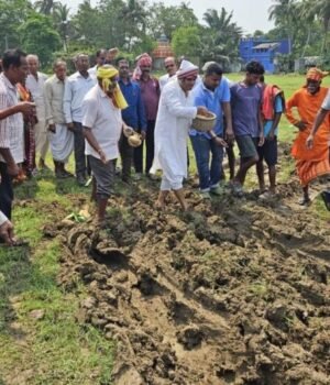 ଭଦ୍ରକ, ୨୦ା୪ (ଓଡ଼ିଆ ପୁଅ / ସ୍ନିଗ୍ଧା ରାୟ) – ଭଦ୍ରକ ଜିଲ୍ଲା କଂଗ୍ରେସ ପକ୍ଷରୁ ସମସ୍ତ ବ୍ଳକରେ ଅକ୍ଷି ମୁଠି ବାହି କାର୍ଯ୍ୟକ୍ରମ ପାଳିତ ହୋଇଥିବାବେଳେ ଭଦ୍ରକ ବ୍ଳକ ଗୋରାମାଟି ଠାରେ ପାରମ୍ପରିକ ରୀତିରେ ଜିଲ୍ଲାସ୍ତରୀୟ କାର୍ଯ୍ୟକ୍ରମ ପାଳିତ ହୋଇଛି। କୃଷି ପ୍ରଧାନ ରାଜ୍ୟ ଓଡ଼ିଶାର ଏହି ପବିତ୍ର କୃଷିଭିତିକ ପର୍ବର ଏହି କାର୍ଯ୍ୟକ୍ରମରେ ଜିଲ୍ଲା କଂଗ୍ରେସ ସଭାପତି ନଳିନୀକାନ୍ତ ମହାନ୍ତି ବହୁ ଚାଷୀଙ୍କ ଗହଣରେ ଗୋରାମାଟି ଠାରେ ଏହି କାର୍ଯ୍ୟକ୍ରମର ଶୁଭାରମ୍ଭ କରିଥିଲେ। ପ୍ରଥମେ ହଳ ବୁଲାଇବା ପରେ ଶ୍ରୀ ମହାନ୍ତି ଅକ୍ଷି ମୁଠି ବୁଣି ଚାଷ କାର୍ଯ୍ୟର ଶୁଭାରମ୍ଭ କରିବା ସହ ଚାଷୀଭାଇମାନଙ୍କ ଶୁଭ ମନାସିଥିଲେ। ଉକ୍ତ କାର୍ଯ୍ୟକ୍ରମରେ ପିତବାସ ଧଳ, ସମିତି ସଭ୍ୟ ଗୟାଧର ସେଠୀ, ସୁଶାନ୍ତ ପଲେଇ, କୁଳମଣି ଜେନା, ଜିଲ୍ଲା କୋଷାଧ୍ୟକ୍ଷ ବିଜୟ ବାରିକ, ମହେଶ କୁମାର ମିଶ୍ର, ବ୍ରଜ ଖୁଟିଂଆ, ଶଶିକାନ୍ତ ବେହେରା, ଗୌରାଙ୍ଗ ମଲିକ, ମାର୍କଣ୍ଡ ମହାଳିକ, ଟୁକୁନା ଜେନା, ଭାଗିରଥୀ ଜେନା, ବାଙ୍କ ନିଧି ବାରିକଙ୍କ ସମେତ ବହୁ ଚାଷୀ ଉପସ୍ଥିତ ଥିଲେ।