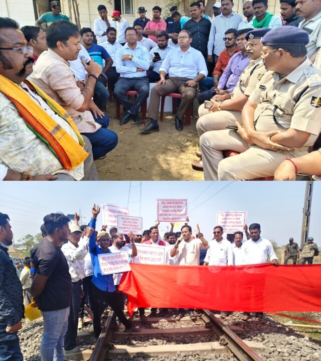 ଟିପ୍ପର ଟ୍ରକ ମାଲିକ ସଂଘର ଭଦ୍ରକ -ଧାମରା ରେଳପଥ ଅବରୋଧ ,ନିଯୁକ୍ତି ଓ ପରିବହନରେ ସୁଯୋଗ ନ ମିଳିଲେ ଆତ୍ମାହୁତି ଚେତାବନୀଉପଜିଲାପାଳଙ୍କ ପ୍ରତିଶ୍ରୁତି ପରେ ଧାରଣା ସ୍ଥଗିତ