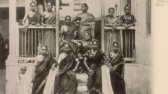 பெண் நடனக் கலைஞர்கள் அல்லது நாச் பெண்கள், 20-ஆம் நூற்றாண்டின் தொடக்கம். பம்பாயில் (தற்போது மும்பை) முதன்முதலில் ஸ்டுடியோ அமைத்த ஐரோப்பிய புகைப்படக் கலைஞர்களில் ஒருவரான எட்வர்ட் டௌரின்ஸ் இந்தப் புகைப் படத்தை எடுத்தார். இவர் மேற்கத்திய பார்வையாளர்களுக்காக நகரத்தைக் காட்சிப்படுத்தும் புகைப்படங்களில் நிபுணத்துவம் பெற்றவர்.