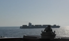 பின்னர், கடற்படை கப்பல் சரக்குக் கப்பலை இடைமறிப்பதாக கூறும் காணொளி ஒன்றை அமெரிக்க ராணுவத்தின் மத்திய கட்டளை மையம் வெளியிட்டது. அதில், சரக்குக் கப்பலை நோக்கி சுடுவதை பார்க்க முடிகிறது.