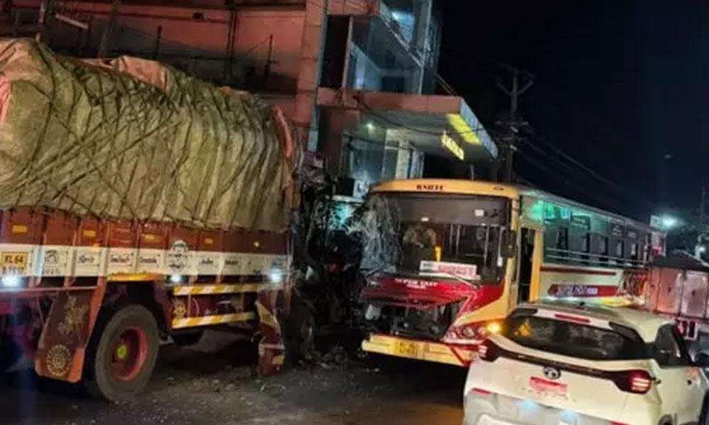 അങ്കമാലി| എറണാകുളം അങ്കമാലിയില് എം സി റോഡില് കെഎസ്ആര്ടിസി ബസും ചരക്ക് ലോറിയും കൂട്ടിയിടിച്ച് അപകടം. അപകടത്തില് കെഎസ്ആര്ടിസി ബസ് ഡ്രൈവര്ക്കും ലോറി ഡ്രൈവര്ക്കും ഒരു യാത്രക്കാരനും പരുക്കേറ്റു. ഇവരെ അങ്കമാലിയിലെ സ്വകാര്യ ആശുപത്രിയില് പ്രവേശിപ്പിച്ചു. രാത്രി പതിനൊന്ന് മണിയോടെ ആണ് അപകടമുണ്ടായത്. കോഴിക്കോടേയ്ക്ക് പോയ കെഎസ്ആര്ടിസി ബസാണ് അപകടത്തില്പ്പെട്ടത്.