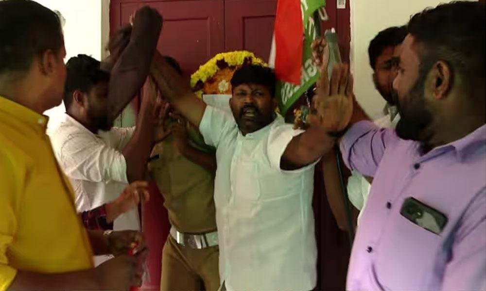 15 മിനിറ്റിന് ശേഷമാണ് കൂടുതല്‍ പോലീസുകാര്‍ ഇവിടെ എത്തിയത്. തുടര്‍ന്നു പ്രതിഷേധക്കാരെ അറസ്റ്റ് ചെയ്ത് നീക്കി. കസ്റ്റഡിയിലെടുത്തവരെ കൊണ്ടുപോകാന്‍ അനുവദിക്കാതെ പ്രവര്‍ത്തകര്‍ പ്രതിഷേധിച്ചു.