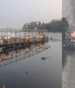 ആലപ്പുഴ|ആലപ്പുഴ പള്ളാത്തുരുത്തിയില് രണ്ട് ഹൗസ്ബോട്ടുകള്ക്ക് തീപിടിച്ചു. ഇന്ന് രാവിലെയാണ് ബോട്ടുകള്ക്ക് തീപിടിച്ചത്. അനാഹിത, കാതറിന് എന്നീ ബോട്ടുകള്ക്കാണ് തീപിടിച്ചത്. ആറ് ബെഡ് റൂമുകള് ഉള്ള ഹൗസ് ബോട്ടിനാണ് തീ പിടിച്ചത്. രണ്ടുബോട്ടുകളും പൂര്ണമായും കത്തിനശിച്ചു. രണ്ട് യൂണിറ്റ് ഫയര്ഫോഴ്സ് എത്തി തീ അണയ്ക്കാന്