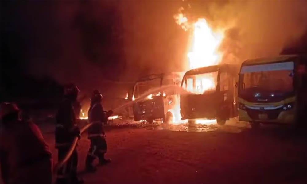 ഇന്ന് പുലര്ച്ചെ മൂന്നുമണിയോടെയാണ് സ്കൂള് ഗ്രൗണ്ടില് പാര്ക്ക് ചെയ്ത ബസുകള് കത്തി നശിച്ചത്. മൂന്നു ബസുകള് പൂര്ണമായും ഒരു ബസ് ഭാഗികമായും കത്തിനശിച്ചു. പുലര്ച്ചെ തീ ആളിക്കത്തുന്നത് കണ്ട നാട്ടുകാരാണ് ഫയര്ഫോഴ്സില് വിവരമറിയിച്ചത്.