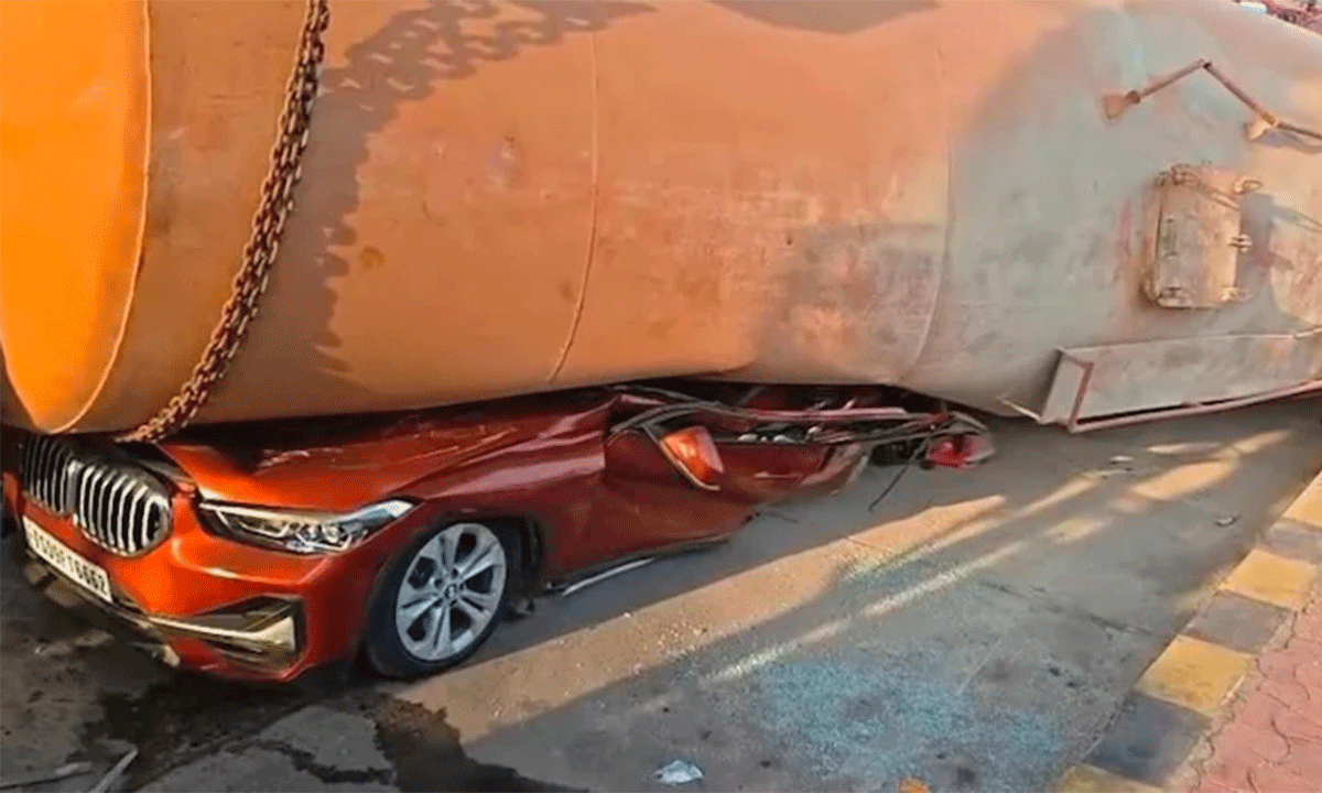 A senior High Court advocate, B. Srinivas Rao, was killed when a concrete mixer truck overturned and flattened his BMW at the Keesara Toll Plaza in Andhra Pradesh. The accident occurred on the Hyderabad-Vijayawada highway while Rao was returning from Bar Council elections in Amaravati. Preliminary reports suggest the truck lost control due to a brake failure while negotiating a turn near the toll gate.