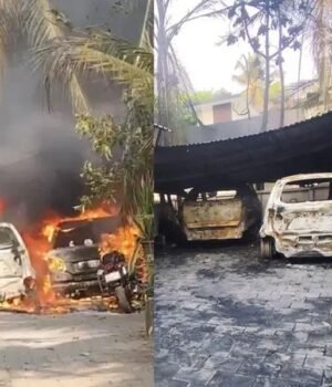തിരൂര്‍| മലപ്പുറം ആലത്തിയൂരില്‍ കാര്‍ ഷെഡില്‍ വന്‍ തീപ്പിടിത്തം. അഞ്ച് ആഡംബര കാറുകളും ആറ് ബൈക്കുകളും കത്തിനശിച്ചു. തിരൂരിനടുത്ത് ആലത്തിയൂര്‍ ഹനുമാന്‍കാവ് ക്ഷേത്രത്തിന് സമീപമാണ് സംഭവം. വ്യാഴാഴ്ച വൈകിട്ട് മൂന്നരയോടെയാണ് കാര്‍ ഷെഡില്‍ തീപ്പിടിത്തമുണ്ടായത്.
