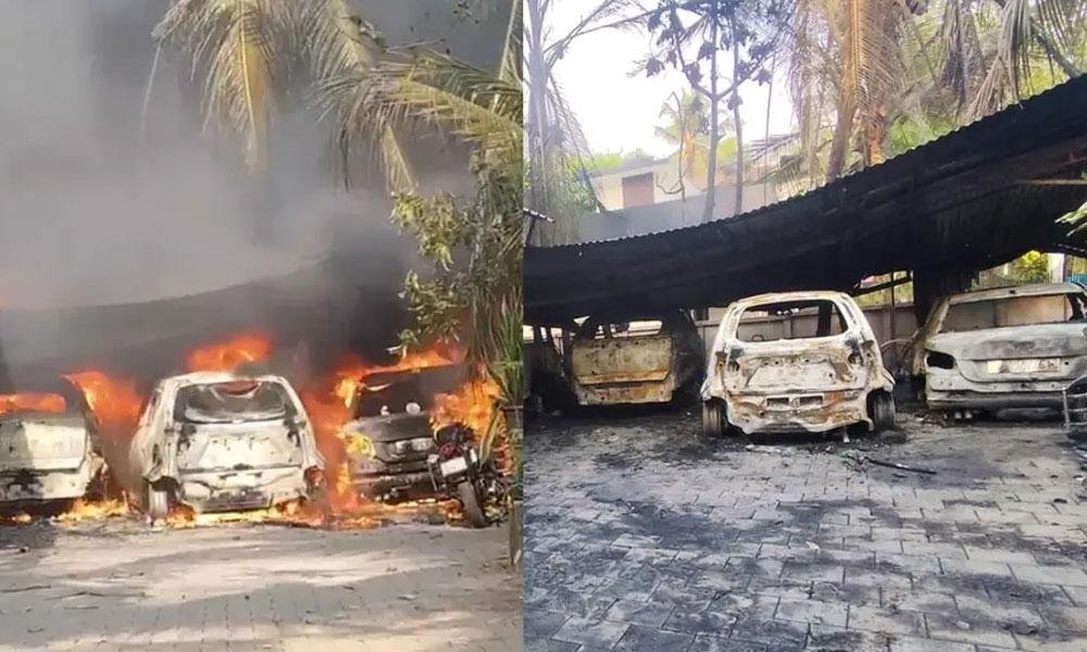 വീടിന് സമീപത്തെ പറമ്പില്‍ കെട്ടിയ ഷെഡാനാണ് തീപിടുത്തമുണ്ടായത്. ഇവിടെ സൂക്ഷിച്ച കാറുകളും ബൈക്കുകളും തീപ്പിടിത്തത്തില്‍ കത്തിയമര്‍ന്നു. രണ്ടു കോടിയോളം രൂപയുടെ നഷ്ടമുണ്ടായതായാണ് വിലയിരുത്തല്‍. പുതുപ്പറമ്പില്‍ ഫ്രാന്‍സിസ് മരിയാ മിഖായേലിന്റെ ഉടമസ്ഥതയിലുള്ള കാറുകളാണ് അഗ്‌നിക്കിരയായത്. അപകടകാരണം വ്യക്തമല്ല. ഷോര്‍ട്ട് സര്‍ക്യൂട്ടാണോയെന്നാണ് സംശയിക്കുന്നത്.