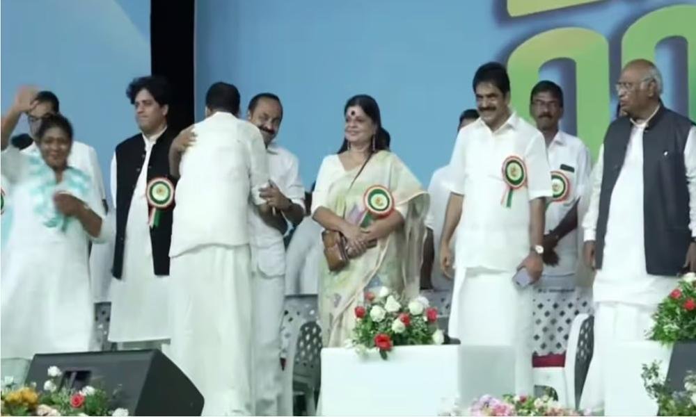 കോഴിക്കോട്ടേയും മലപ്പുറത്തേയും സ്ഥാനാര്‍ഥികള്‍ വേദിയിലെത്തി. സമ്മേളനം ഉദ്ഘാടനം ചെയ്ത മല്ലികാര്‍ജുന്‍ ഖര്‍ഗെ സംസ്ഥാന സര്‍ക്കാരിനെതിരെ രൂക്ഷ വിമര്‍ശനമാണ് നടത്തിയത്. കേരളത്തില്‍ ചായക്കട തുടങ്ങുന്നതിനേക്കാളും ബാറുകളാണ് തുറന്നത്. ശബരിമല സ്വര്‍ണ്ണം കൊള്ളയടിച്ചവര്‍ക്ക് സര്‍ക്കാര്‍ സംരക്ഷണം നല്‍കി. ദൈവത്തെ പോലും വെറുതെ വിടാത്തവര്‍ എന്ത് വൃത്തികേടും ചെയ്യുമെന്ന് ഖര്‍ഗെ കുറ്റപ്പെടുത്തി.