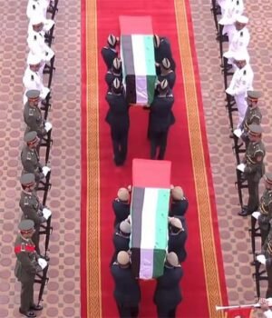 അബൂദബി | ഔദ്യോഗിക കൃത്യനിര്‍വഹണത്തിനിടെ ഹെലികോപ്റ്റര്‍ തകര്‍ന്ന് വീരമൃത്യു വരിച്ച രണ്ട് യു എ ഇ സൈനികര്‍ക്ക് രാജ്യം കണ്ണീരോടെ വിട നല്‍കി. ക്യാപ്റ്റന്‍ സഈദ് അല്‍ ബലൂശി, ഫസ്റ്റ് ലെഫ്റ്റനന്റ് അലി അല്‍ തുനൈജി എന്നിവരുടെ ഭൗതിക ശരീരങ്ങള്‍ ഔദ്യോഗിക സൈനിക ബഹുമതികളോടെ സംസ്‌കരിച്ചു.