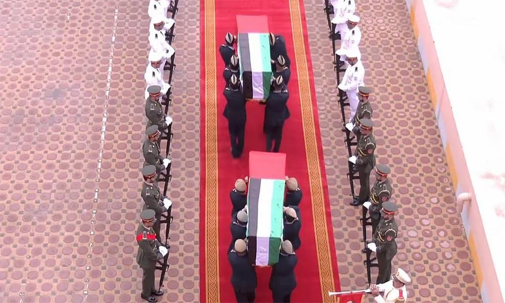 സൈനിക ബഹുമതികളോടെ നടന്ന ചടങ്ങുകള്‍ക്ക് ശേഷം മൃതദേഹങ്ങള്‍ ബന്ധുക്കള്‍ക്ക് വിട്ടുനല്‍കി. വൈകുന്നേരത്തോടെ അല്‍ ഐനിലും റാസ് അല്‍ ഖൈമയിലുമായി ഖബറടക്ക ചടങ്ങുകള്‍ നടന്നു.