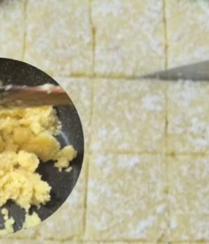 - किसी बड़ी ट्रे या थाली को घी से ग्रीस कर दें। जिससे बर्फी को सही शेप मिल सके।