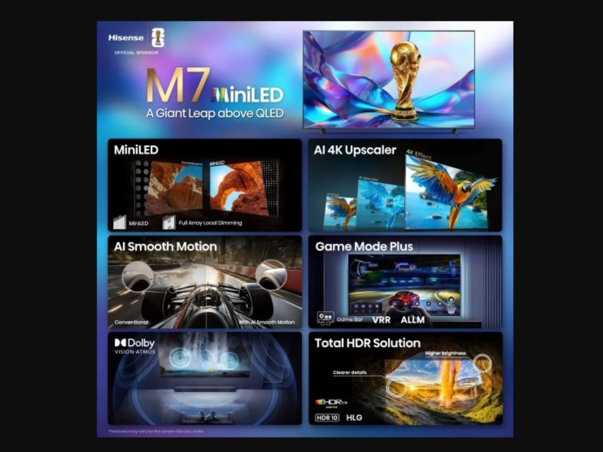 नई M7 सीरीज में कंपनी 3,840 × 2,160 पिक्सल रेजॉलूशन और 60Hz रिफ्रेश रेट के साथ 4K UHD डिस्प्ले ऑफर कर रही है। मिनी-एलईडी बैकलाइटिंग ट्रडिशनल LED डिस्प्ले के मुकाबले डीप ब्लैक और ब्राइटर हाइलाइट्स जेनरेट करके कॉन्ट्रास्ट को बेहतर बनाता है। हाइसेंस की Hi-QLED कलर टेक्नोलॉजी का मकसद कलर्स की सटीकता को बेहतर बनाना और अच्छी लाइटिंग वाले रूम में स्क्रीन की विजिबिलिटी को बनाए रखना है।