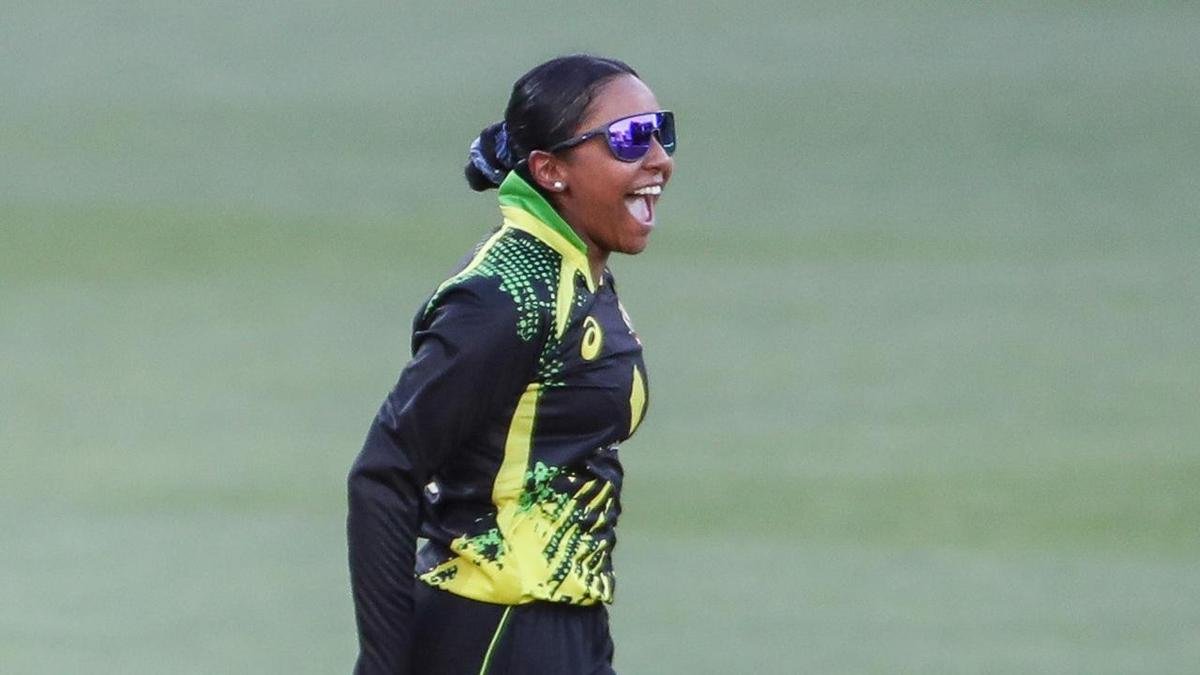 She first bowled a hard-swinging Hayley Matthews for 11, before trapping Shemaine Campbelle lbw when the right-hander tried to reverse sweep.
