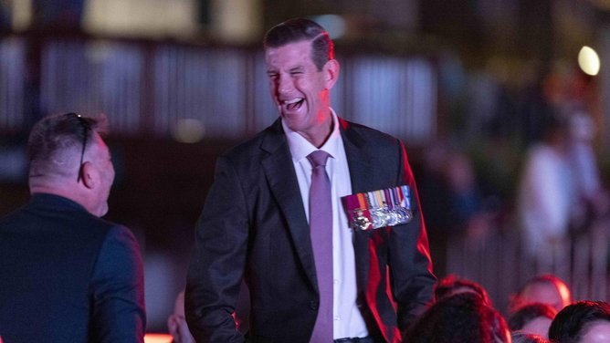 He is on bail accused of war crimes murder, but received cheers and handshakes at the service honouring soldiers past and present.