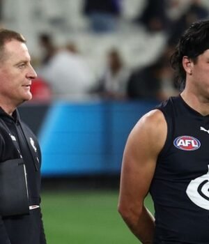Wright said Hollands is doing “OK” but the decision has already been made to take him out of the side for Carlton’s trip to Perth to face the Dockers on Saturday night — with no timeline set on his return to the AFL.