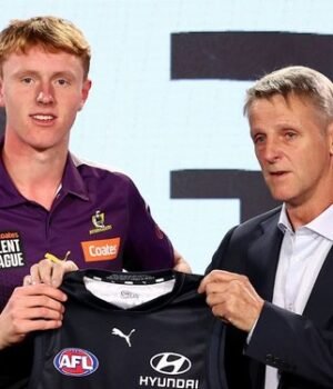 Camera IconHarry Dean and his father, Peter, at the 2025 AFL draft. Credit: Getty