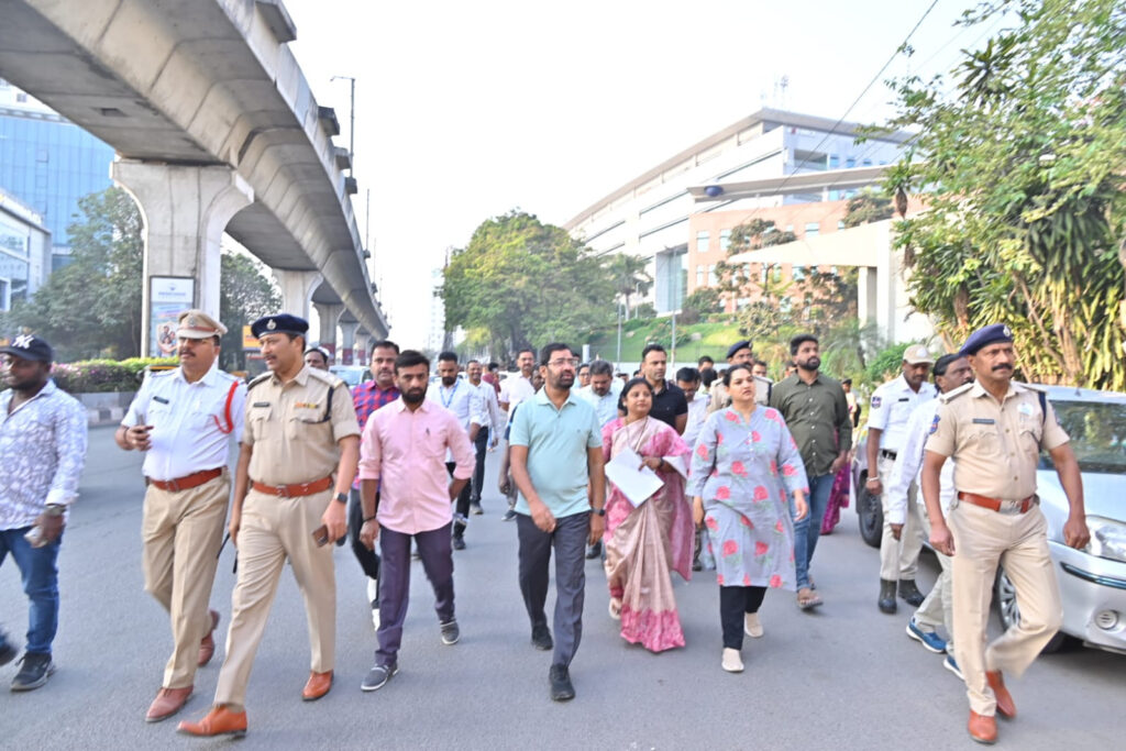Commissioner Srijana, Hyderabad Metropolitan Water Supply and Sewerage Board (HMWSSB) Managing Director Ashok Reddy, Zonal Commissioner Hemant and traffic police officials discussed the upcoming road widening works from Lemon Tree Hotel to Shilparamam.