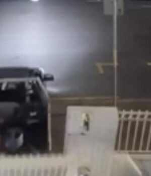 Although images shows a man standing behind the walls and in the course of the car as it approached, no one was hurt.