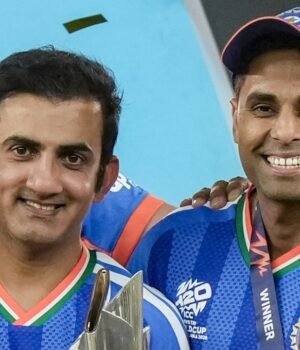 Suryakumar Yadav, Gautam Gambhir and Jay Shah carried India’s T20 World Cup trophy to Mumbai’s Siddhivinayak Temple as part of the team’s post-title celebrations. Suryakumar was seen posing for pictures with the trophy alongside Gambhir, with fans and temple officials gathered around them.