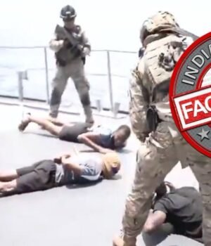 A video allegedly showing Indian Navy officers capturing Somali pirates has been widely shared on social media. An X user shared the video of armed officers detaining people on board a ship and wrote: “Indian Navy MARCOS (Marine Commandos) captured 35 Somali pirates during anti-pirates operation”.