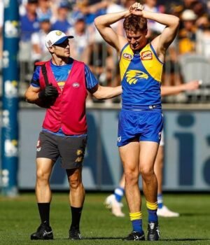 West Coast mentor Andrew McQualter said,” I’m imagining he’ll invest a little bit of time away from the game then trying to get himself good and proper again, and we’ll do everything we can help him.”
