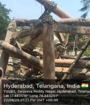 Hyderabad: Hyderabad Disaster Response and Asset Protection Agency (HYDRAA) demolished a disused overhead water tank in Sanjeeva Reddy Nagar, Hyderabad, on Wednesday, April 22.