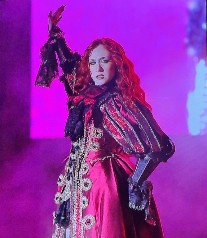 She jammed alongside her all female band members who also wore eccentric outfits on theme with Roan’s drag-queen influenced style.