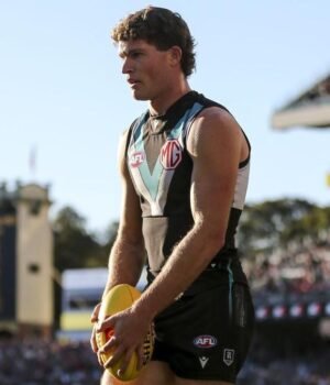 Port Adelaide’s emerging spearhead Mitch Georgiades says he’s yet to ponder his long-term future amid rumoured interest from Western Australia.