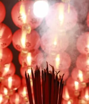 Holding up a cluster of incense sticks, many bowed their heads several times before planting the sticks in containers placed in front of a temple hall.