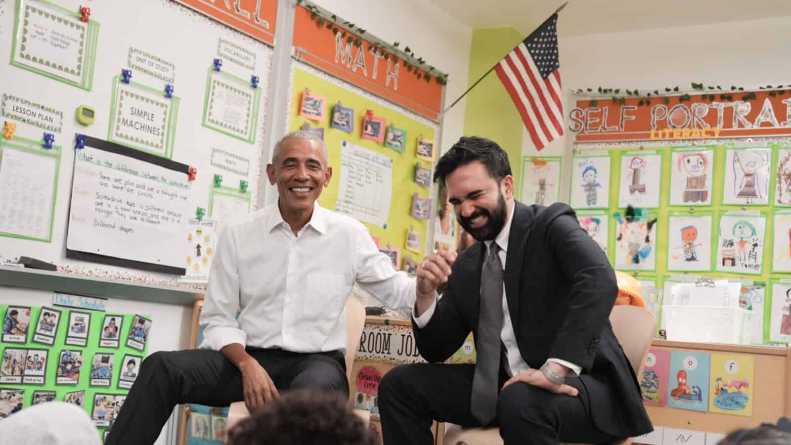Obama and Mamdani did not take questions after reading the book “Alone and Together” to the children and leading a singalong of “The Wheels on the Bus.”