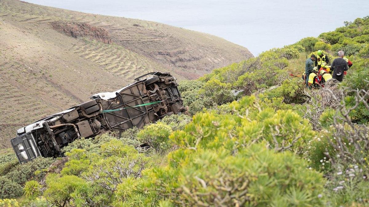 The Canary Islands government’s shared photos on social media that appear to show the bus veered off the road at a helix stretch before settling in a valley.