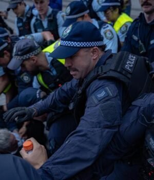 The NSW police commissioner has defended the actions, with Premier Chris Minns maintaining officers were put in a difficult position as they were instructed to clear the protesters.