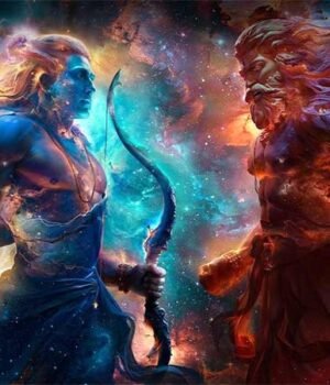 The opening sequence draws from a significant yet relatively underexplored portion of the Ramayana. Before the events involving Rama unfold, the story traces Ravana’s rise to power. After seizing Lanka from his half-brother Kubera, the original ruler of the golden city, Ravana’s ambition pushes him further. He is said to have pursued Kubera to Alakapuri near Mount Kailash, turning the conflict into a defining display of dominance.