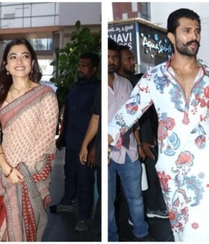 Actor Rashmika Mandanna was seen embracing traditional customs, sporting a mangalsutra and sindoor as she stepped out with her actor-husband, Vijay Deverakonda. The couple was spotted walking hand in hand during a fan meet following a visit to Vijay’s ancestral village in Telangana earlier this week.