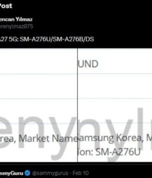 सैमसंग अपना एक और नया फोन लॉन्च करने वाला है। इस फोन का नाम – Samsung Galaxy A27 5G है। फोन की लॉन्ट डेट या लॉन्च टाइमलाइन के बारे में अभी कोई ऑफिशियल जानकारी सामने नहीं आई है, लेकिन यह फोन IMEI डेटाबेस में दिख गया है। टिपस्टर Erencan Yılmaz (@erenylmaz075) के अनुसार फोन का ग्लोबल और यूएस वेरिएंट IMEI पर लिस्ट हो गया है। IMEI लिस्टिंग के अनुसार फोन का मॉडल नंबर – SM-A276B/DS और SM-A276U है। लिस्टिंग में फोन के फीचर्स और स्पेसिफिकेशन्स के बारे में कोई जानकारी नहीं दी गई है। अफवाह है कि गैलेक्सी A27 5G स्मार्टफोन मौजूदा गैलेक्सी A26 5G का सक्सेसर होगा।