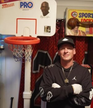Mr. De Vaney is a devoted fan of Michael Jordan games, and he has labelled himself the” Michael Jordan Toy Historian” for handling the large collection of his perfectly gathered products, shoes, matches, and life-sized figurines. He also wears gloves when handling them.