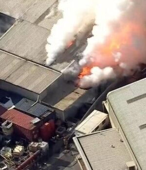 Home Latest Australia Smoke warning for Perth suburb after fire at recycling centre storing lithium-ion...